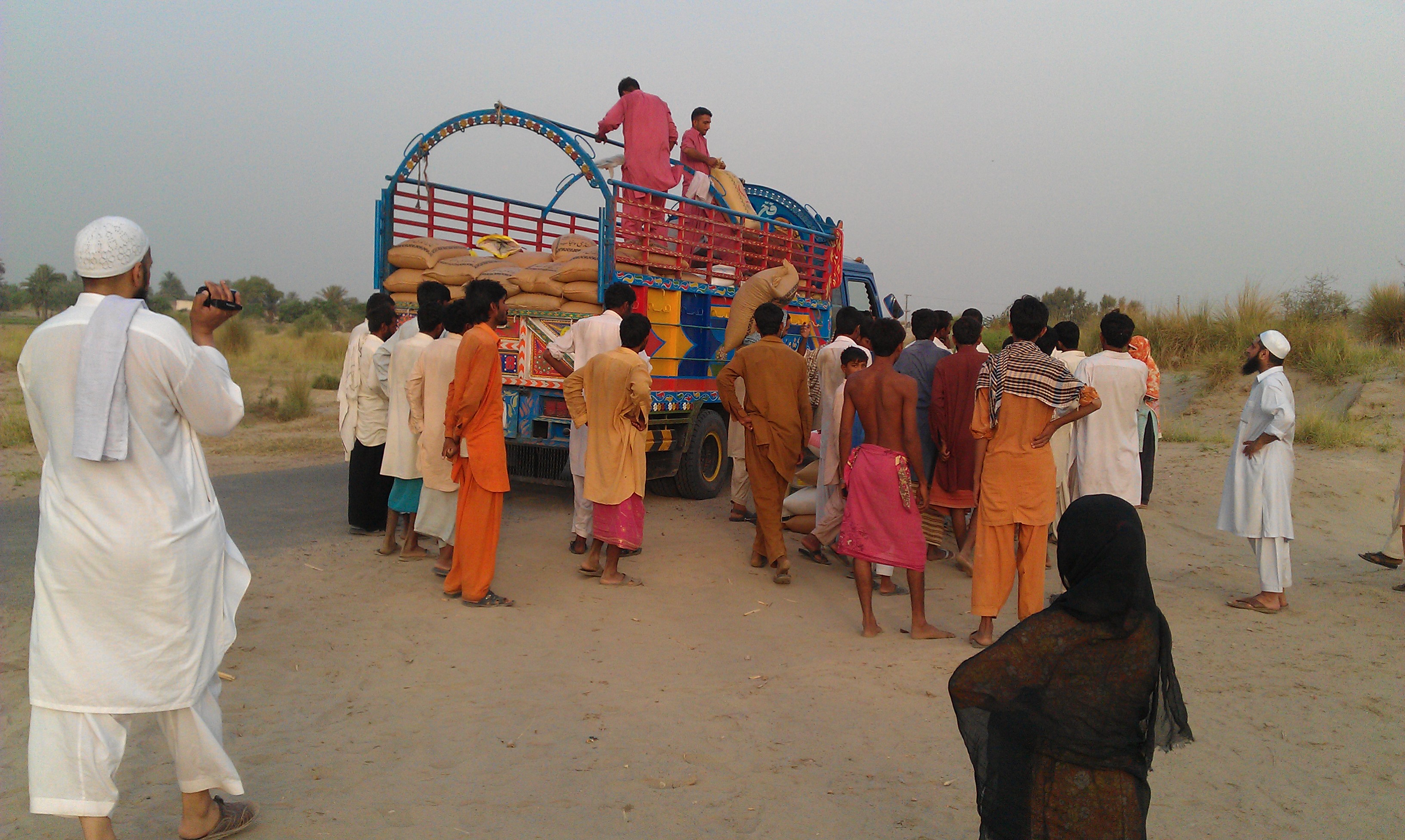 Volunteering members of Children of Adam Appeal visit the Kot-Addu area of Punjab, Pakistan during July 2011 where we successfully distributed food items to those who had been heavily affected to help them through Ramadan and thereafter. The recipients had been relocated and provided land away from their destructed previous homes. They have managed to make shelter for their families with the combination of charity provided tents and mud huts. Children of Adam Appeal distributed a truck full of 50kg food item bags including rice, flour, ghee, salt, sugar, daal and mixed spices; each family receiving all 7 items.